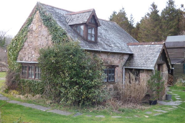 Photo of our cottage - built in 1880s. Photo taken a few years ago before I attacked the garden around it.. It has a vaulted ceiling. Small living area. Mezzanine level for tiny bedroom -that's the dormer window.