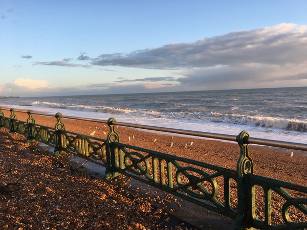 Hello from the wet and windy south coast where we’re enjoying hunkering down with ds and family. We managed a walk by the sea on the day we arrived and again briefly this morning. The prom was covered in shingle, courtesy of the stormy weather and this morning some brave possibly mad souls were taking full advantage of the windy weather!