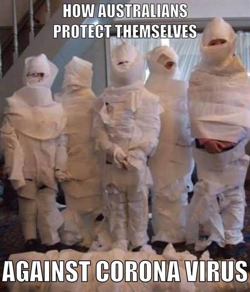 merlotgran is that toilet paper those people are wrapped in? How dare they - don't they know there's a shortage in some panicky parts of the UK?