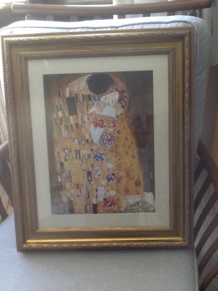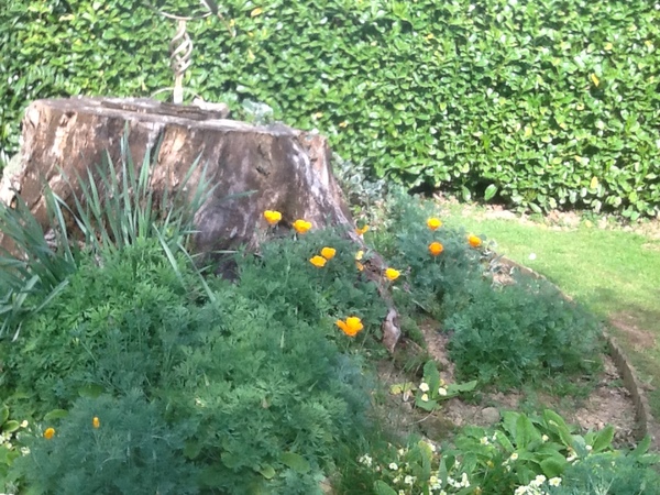 I'm sending you two photos today. One is the print I bought for DH's birthday, a famous one but one which means so much (delivered unbelievably in time by A****n) and the second is our first poppies. Used to call them Californian poppies when we lived in Scotland but not sure if that's the right description here. They grow in an oak tree stump.