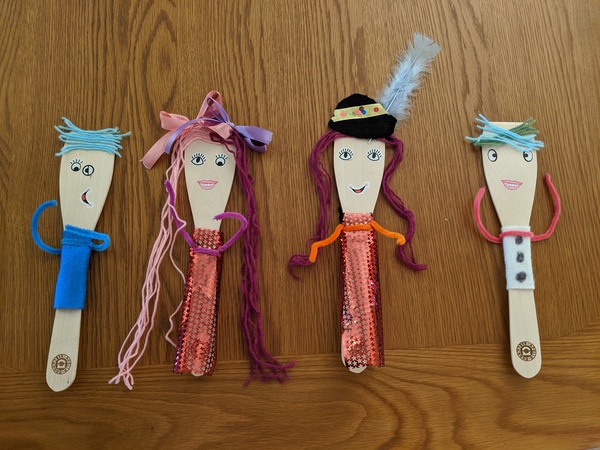 Alishka the children made "self-portrait" dolls for Mother's Day. Left to right they are the same 2 year old boy, a 4 year old girl, 8 year old girl and 10 year old boy.