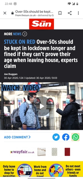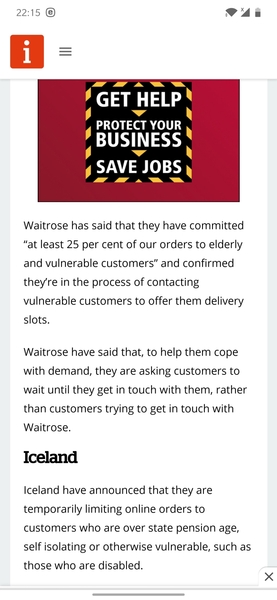 Having said that, if they want over 70s to isolate, then provision for food delivery needs to be made easier. What is the point of asking people to stay at home if they have to shop. We dont all have someone who can do it for us. And people are having to spend ages looking for slots. Many I know sit at midnight waiting for Tescos to release slots. Its utterly ridiculous.