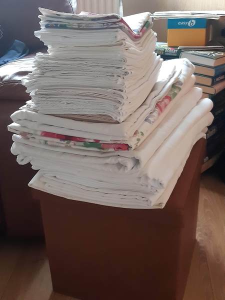 Vacuumed all the downstairs rooms. Did 3 baskets of ironing and put it away. Sorted out more fabric for making face masks, will cut them out tonight. Received, sanitized and put away 2 deliveries of groceries. Played with the dog in the garden, and now I'm going to have a cup of tea.