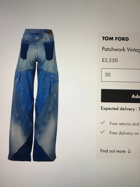Puzzler61 My God-daughter sent me a text with a link that I can't open. denimology.com/2020/12/jennifer-lopez-in-tom-ford-patchwork-jeans It's supposed to show you Jennifer Lopez wearing those mega expensive jeans. Did you click on Tom Ford's website? Those jeans look like something cobbled together out of bits of cast off jeans.