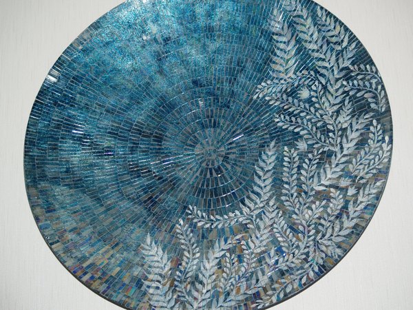 During our wee highland fling, Mr Soop took me into a gorgeous gallery in Dornoch. He wished me to choose a special birthday gift. After much to-ing and fro-ing, 'umming and ahhing, I did just that. It now hangs on our sitting room wall. A huge mosaic dish (over six feet in circumference.) The wall needed plugging in order to support it. We both love it. I took a photo for you.