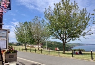 Yesterday, after a dull then wet start, we had some beautiful sunshine which only appeared as I walked over the Downs. Planning on calling into my favourite hostelry for just a tonic water, I was tempted into having lunch there! The special was a freshly caught Brixham filet of plaice cooked in lemon juice. Superb! One photo is the view from my table there, with the other (of a busy bee) being from the holiday home site.