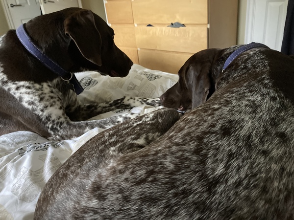 Good morning Mick and all his followers. Its cloudy and breezy in Suffolk this morning. We have had two granddogs overnight so we’re awake earlier than usual. They have been pretty good, apart from a bit of barking at bedtime. They not allowed upstairs at their house but they soon made themselves at home here on my bed!