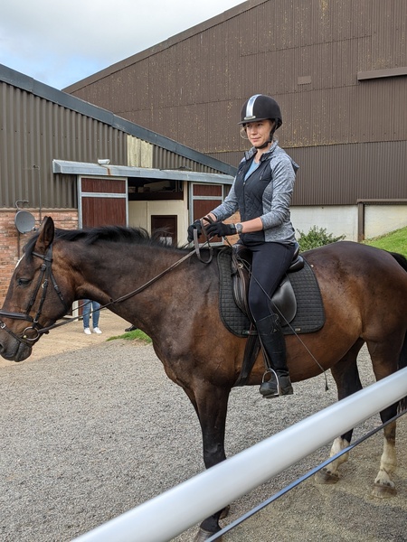 Spent a lovely afternoon yesterday sat in the sun with a coffee while watching DD's riding lesson. Luckily she was in the outdoor school. Afterwards we repaired to a nearby pub and sat in the garden with wine! Picture is DD waiting to start her lesson.