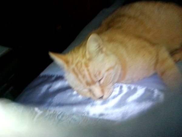 Two photos attached,one of the aftermath of the fire,the other of Baker. I don't know if some of you remember when he was desperately ill last year and the vets had given up hope that he would recover. Well,here he is enjoying a snooze away from the football!