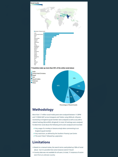 I need to point one thing out re the racist abuse sufffered by some of the England players. Gareth Southgate himself said most (not all) of this racist abuse is coming from other countries (as was the case before the Euros even started). Lets not jump to conclusions about most English football fans being racist please.