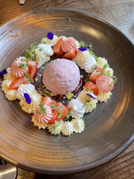 This is Eton Mess served to a friend this week in a ‘posh pub’. Not sure if it was deconstructed or reconstructed but it came with a large dod of ice cream in the centre which was a bonus ?