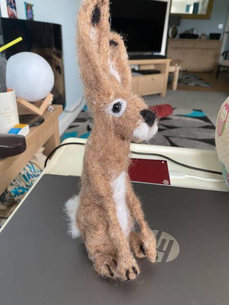 I'm not sure if I mentioned I was going to do a needle felting class... I have fallen in love with a new craft that I didn't need lol...I'll post a pic of my 2 attempts so far, a star gazer hare that I made in the class and another I made at home that needs some work as the legs don't look right- but practice makes perfect and its more successful than the sponge !