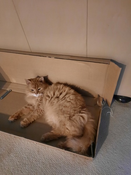 Life sounds as if it's lots better Yia. Antibiotics in doing so much good, do flatten our immune systems, don't they, so hopefully you have something now which agrees with you. Get properly well soon! BA Duncan and cats are like children - they're happiest with a box! He gets more handsome - and laid back by the day.