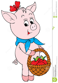 I've always pictured piggy skipping off with a basket on one arm, and a checked neckerchief!