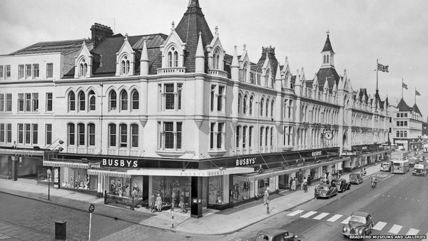 Just to mention that Bradford was once a lovely place with some amazing old buildings. This was a department store called Busby's which has now gone and been replaced by the second picture, a bland shopping retail area. Would you believe it's the same street corner! I expect this has happened in many places.