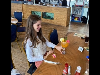 Back out later to watched MrJ’s Leeds play the mighty Arsenal, I doubt we’ll need dinner, lunch was huge, but a snack may be required!this is Imogen, delighted with her ‘mocktail.