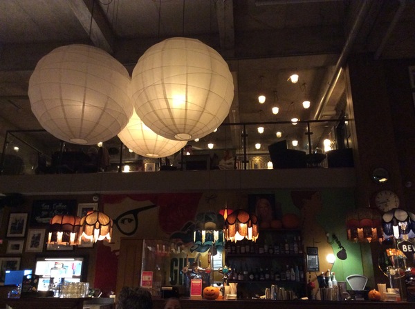 Anyway we dived in here at 6pm. It’s the Loungers Bar below our apartment. I like it especially on winter evenings. It’s cosy and literally next door, 2 floors down. We usually go up to the mezzanine area but this photo, taken tonight is good - I liked all the pumpkins on the bar!