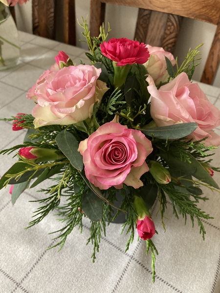 I am glad you are happier ann and hope your shoulder is feeling better soon. I had my flu jab first thing, then a flower arranging morning where two of our WI taught us two arrangements (with coffee and cake of course!) The photo is of one of mine.