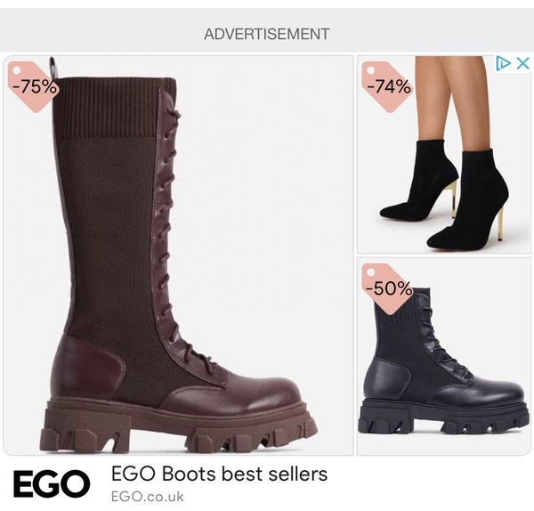 What do you think of the ads that appear on GN? I know they must bring in much needed finance, but are they really aimed at grans. I showed my DGD the advert attached because she really likes weird soles. Are your boots/shoes like these?