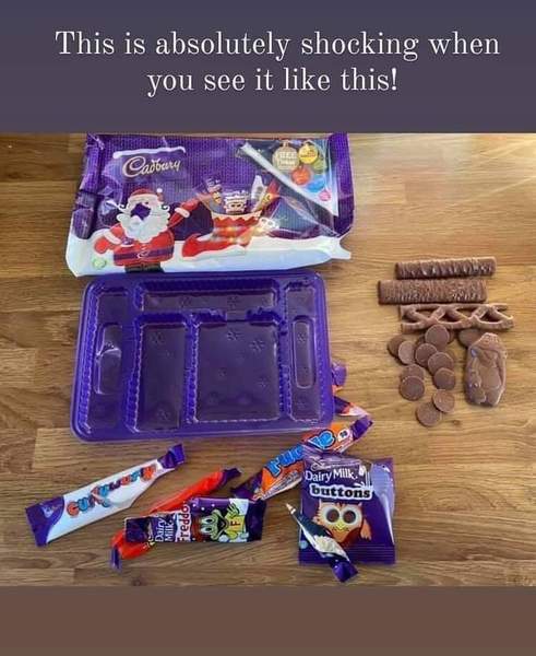 I was shocked to see how little chocolate and how much packaging there was in a typical Christmas treat and have resolved to steer clear of novelties this year.