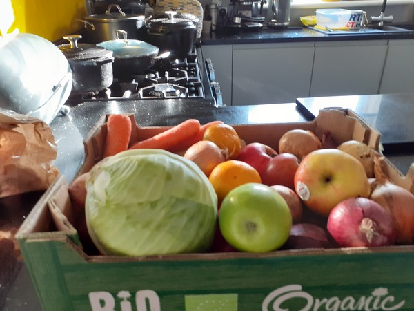 The highlight for me was the veggie box for £1.50, I reckoned that there was a least worth £10 of still fresh veggies there. ( Please ignore the messy kitchen ☺)