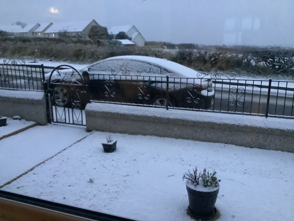 Good morning all from Polmont where it's 1° and snowing. There's a light covering on the cars and road. I couldn't sleep after a couple of bad nights so I'm up with a cup of tea watching the flakes meander down in the dark. I hope everyone keeps safe.
