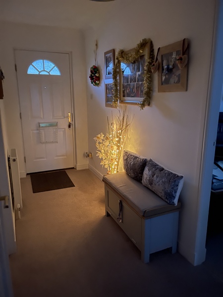 Teeny hallway into living room, this is first bit seen on entering, cosy and warm!