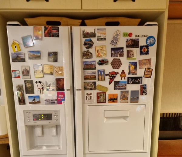 I really don't care for fridge magnets and didn't have any when I had a free standing fridge - you have to keep taking them all off when you clean the kitchen each day. In this new house the fridge is built into a cupboard.