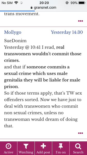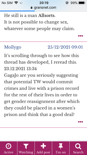 Anyway, trans issues aside, I am not sure that Intersectional Feminism can be followed in any realistic sense of the term. If everything we did and thought had to be run through a filter to remove any disadvantage to any disadvantaged person or group, no progress would ever be made, and people's thought processes would be incredibly garbled.