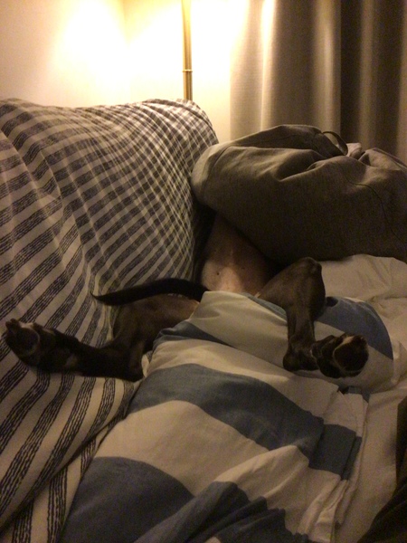DH got up this morning, made coffee which we drank, scrolled through the news on his computer giving me a running commentary (much appreciated as I can't read it unless standing slap bang in front of screen) and by the time I had washed up and was ready to go shopping, he had curled up on the sofa under his mohair tarten plaid, sound asleep. Slept all the time I was out, plus 1 hour. Got up, took a shower and is now asleep again.