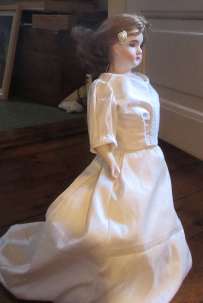 Efter over a century in little girl's clothes, I have just made her a ball-gown and corset (with advantages).