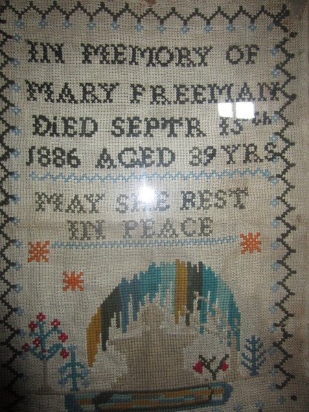 A sampler created in 1886 by my Great Grandma when her mother (my Great Great Grandma) died aged 39. I treasure it.