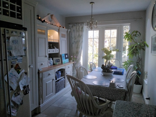 I love my kitchen -definitely not sleek & modern & currently needing a bit of a sort out! We were building an extension 12 years ago & I found a guy on ebay making freestanding cupboards & got him to make this for a fraction of a showroom kitchen-apart from the dresser which was purchased later-another ebay bargain! Had the whole kitchen re sprayed by a company 3 years ago & lasting really very well. We have an edwardian house so it suits it & us! Really lived in but I accept not to everyone's taste