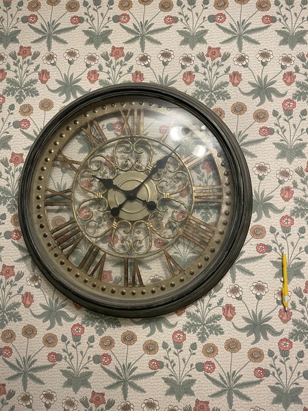 I have vetoed her idea for a large tv on the fireplace wall but reluctantly agreed to a black skeleton clock.