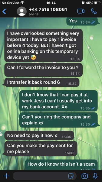 Shinamae I have had that WhatsApp one as well. I asked the person to prove who they were by answering a question only my son would know answer to. Person couldn't of course. I also contacted my son. I blocked and reported the number.