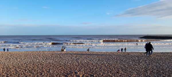 The sun came out a bit here this afternoon. Surf's up, though not quite Hawaii!