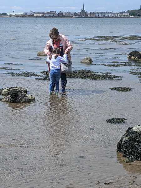 All was well, until she stepped on some seaweed, which was actually covering a hole, filled with water and slimy seaweed. Yuk, yuk, yuk!