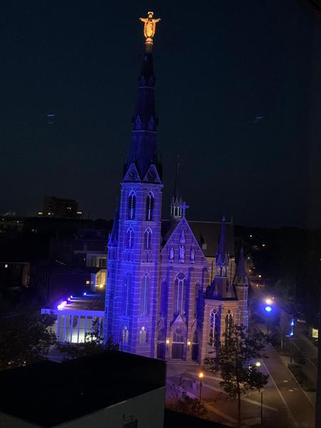 Our hotel is nice and just had time to get food last night. We had a nice meal at a local Italian and then bed. I enclose a photo of the view from our window.