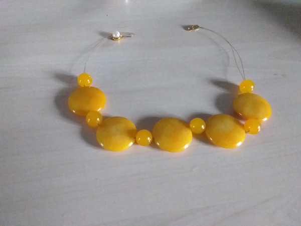 So here is a photo of the finished item, yellow jade, minus the fiddly bits to keep the beads fixed. I just couldn't manage it. ? However, no-one is going to be close enough to notice!