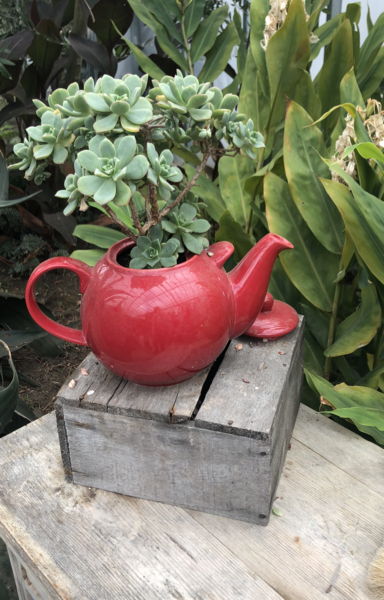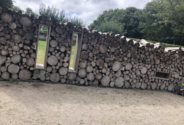 Had the most wonderful afternoon out today which has boosted my spirits. A contemporary art/craft fayre at Potager Garden, further down southwest in Cornish Cornwall, enticed me - so with Mya for company, I wandered off and indulged my creative inner being. I was tempted by a pair of silver earrings and admired a log wall - it has inspired me - for the new garden. Then I spotted a teapot. What a great idea I thought !