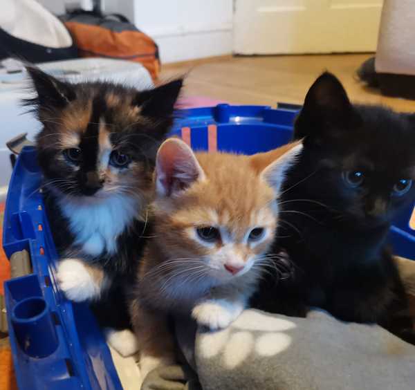 Unbelievably, last night, a lovely ginger and white kitty popped by for a few mouthfuls. They look like older versions of your three.