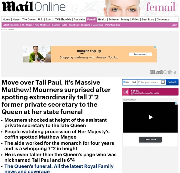 We were interested in the Queen's private secretary who is 7ft 2 and walking in front of the coffin.