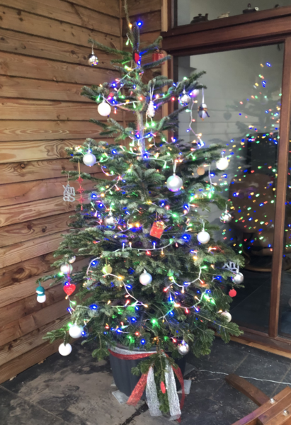 Hello Kitcheners. The log fire's a glow and the mulled wine is doing the same for me. I braved an hour decorating the tree outside on the veranda. Looks grand, my nan would say. It has lot of hand made adornments, I've gathered over the years. Excuse the muddy slabs. Much soil was needed for the tub. Water and brush will be out tomorrow.