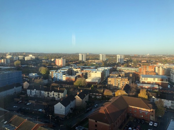 Good morning from a dull but dry Black Country. It was lovely and sunny yesterday. Clear blue sky view from our Hotel in Birmingham yesterday morning.