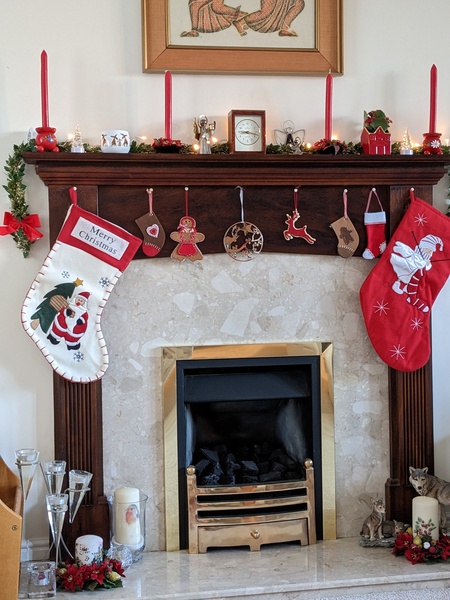 Finished putting the decorations up yesterday, and am pleased with how they look. I don't go overboard like I used to, Just the sitting room and front porch, plus a candle-bridge in the front study window. I have lost one set of fairy lights, but they're not essential to the overall effect. I expect they're in a drawer or cupboard somewhere and will turn up unexpectedly.