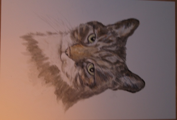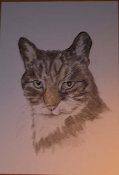 The pet portrait has reached a certain stage. I could leave it well alone and feel satisfied up to a point, or tiddle with it and possibly ruin that which I've achieved.