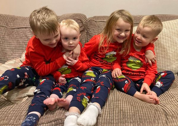 Photo of our four great-grandchildren. Willow has a toothy smile.