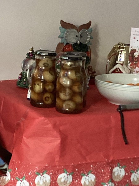 Bubble and squeak, cold meat and pickles are ready for what will be a late dinner, my friend made us all pickled onions, I used to do it, he took over when we lived in France.