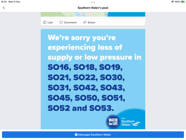 East Devon is in the same state as the OP, many areas have been missing water since the weekend, Seaton, Axminster area. My DD is smack bang in the middle but has water...no rhyme nor reason...