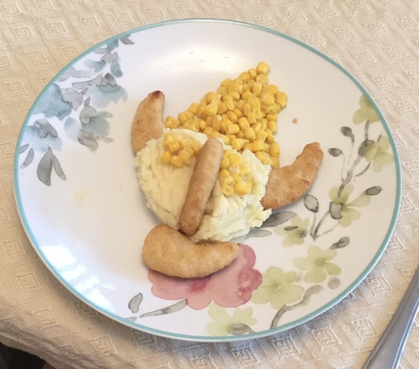 Hubby says my food presentation skills are lacking (for some reason when he prepares food, it does look really nice and we always laugh about his Mum having used to just pile food on plates a bit like a hillside of food), so I upped my presentation and provided this for dinner yesterday, I was going to send the photo to the Grandkids, but thought better of it, can you see why lol…..